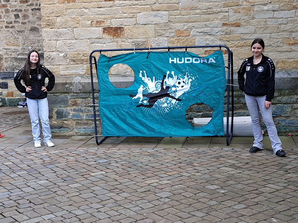 Bis es für die Jugendlichen aus dem Bistum ab 16.30 Uhr in den Dom ging, hatten die vier Standbetreuerinnen gut zu tun. Die erfolgreichen Tore und Körbe wurden Obst, Müsliriegeln und kleine Süßigkeiten gab es als kleine Belohnung. Alle hatten Spaß am Sport, so war es eine gelungene Aktion!